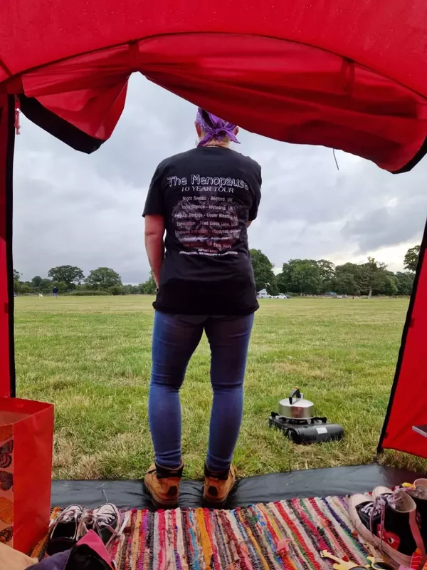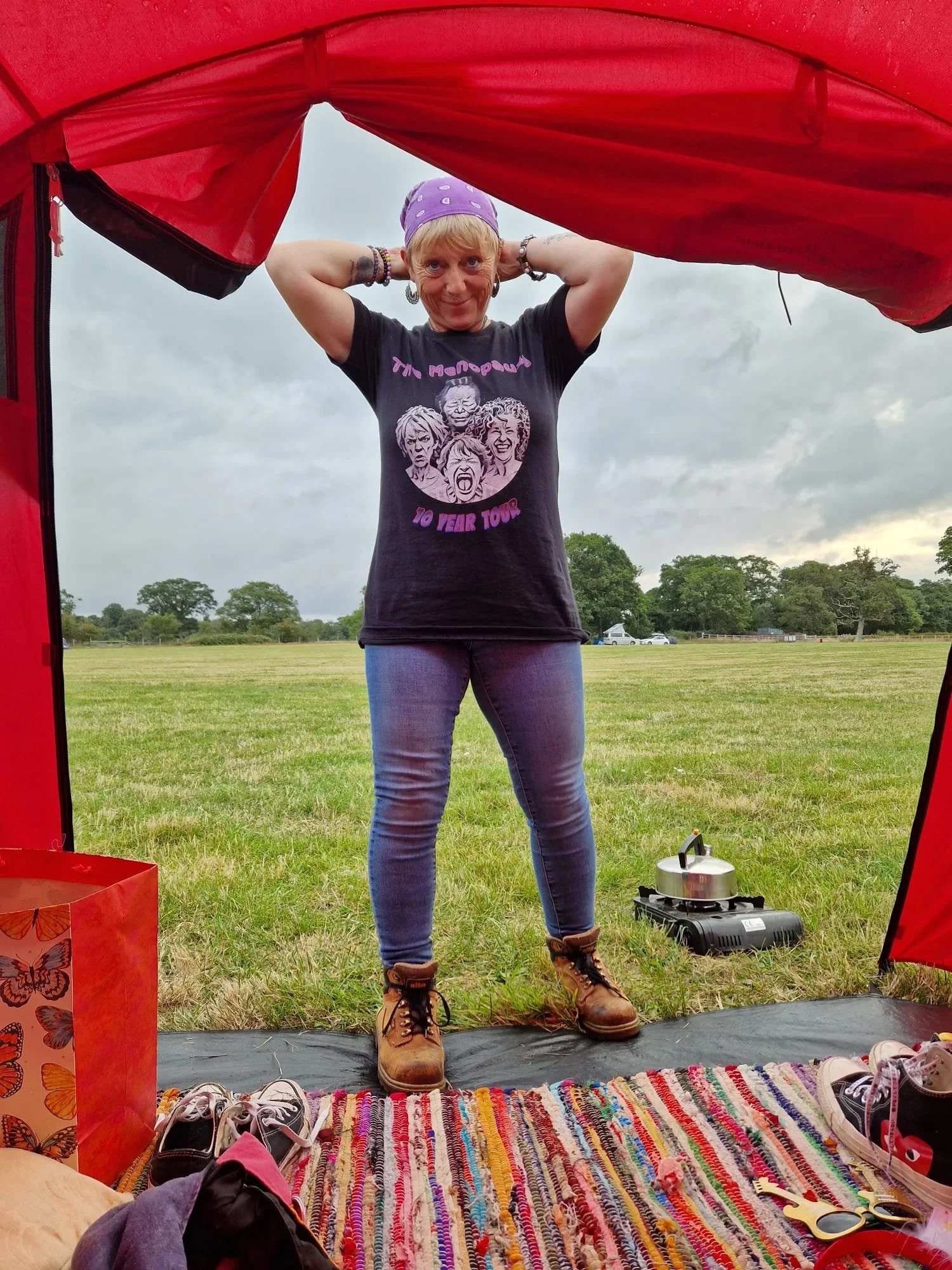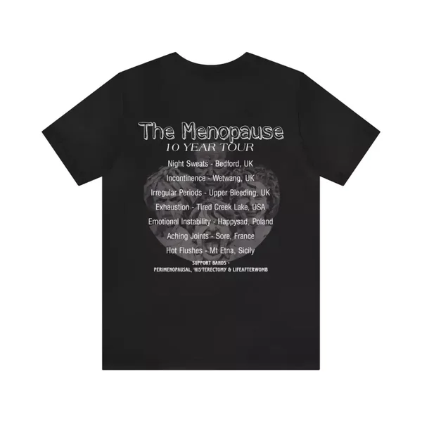 Designed by Jo who is herself experiencing the joys of the Menopause. She wanted something that showed women still want to feel Rock & Roll in a light hearted way, even while their bodies are dragging them through the mill.